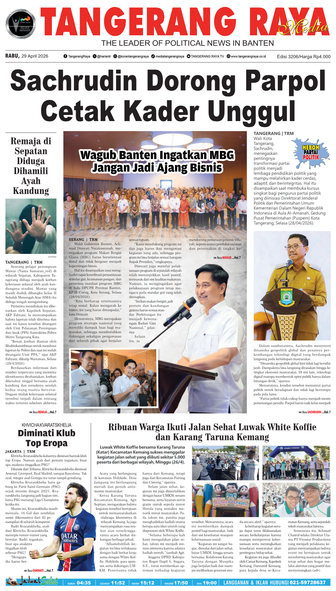 Teruji Kendalikan Inflasi, Kota Tangerang Masuk 12 Besar Terbaik Versi Kemendagri Cetak Generasi Muda Qur’ani, STQ Tingkat Kecamatan Cipondoh Tahun 2026 Sukses Digelar Habis Serve, Terbitlah Juara! Hotel Santika Premiere Bintaro Hadirkan “Her Serve – Kartini Mini Padel Tournament” untuk Rayakan Semangat Perempuan Forum Pemred Multimedia dan MitMe.id Jalin Kerjasama Strategis Monetisasi dan Penguatan Brand Media Nasional dan Daerah Elis Warningsih Jabat Plt Kepsek SDN Kukun Gantikan Hj.Tuti Pensiun