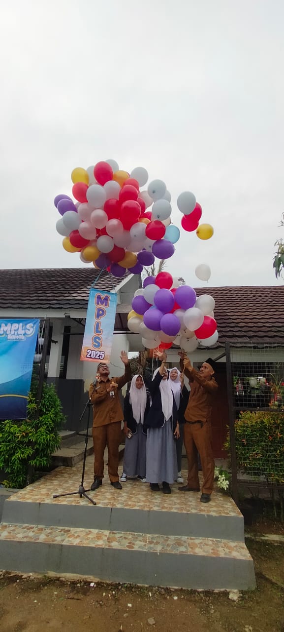 Sebanyak 396 murid baru kelas X di SMAN 1 Bandung kabupaten Serang mengikuti masa pengenalan lingkungan sekolah (MPLS) ramah. Acara pembukaan ditandai dengan pelepasan balon dan penyematan tanda oleh Pelaksana Harian Kepala Sekolah SMAN 1 Bandung, Hariri di halaman sekolah, Senin (14/7/2025).