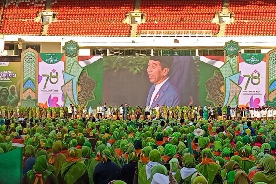 “Ibu-ibu sekalian, marilah kita mempererat silaturahmi, menguatkan ikatan kita, untuk saling menjaga, saling mengingatkan agar situasi tetap sejuk, situasi tetap rukun, kita semua tetap riang gembira. Dan saya tahu, Muslimat NU paling tahu dan paling mengerti soal ini dan harus saya akui ibu-ibu memang paling juara,” ungkap Presiden Jokowi dalam sambutannya di stadion GBK, Jakarta.