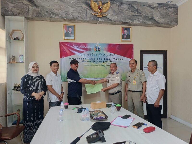 Secara simbolis penyerahan dilakukan oleh Kasi Penataan dan Pemberdayaan, Ahmad Mawardi kepada Kepala Desa Sinargalih, Milasari di ruang rapat Kantah Lebak, Senin, 13 Oktober 2025.
