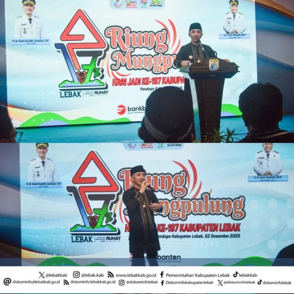 Masih dalam rangkaian Peringatan Hari Jadi ke-197 Kabupaten Lebak, Bupati Lebak Moch. Hasbi Asyidiki Jayabaya didampingi Ketua TP. PKK Lebak, Belia Hasbi Jayabaya menghadiri kegiatan Riung Mungpulung yang digelar di Pendopo Bupati Lebak, Selasa (02/12/2025).