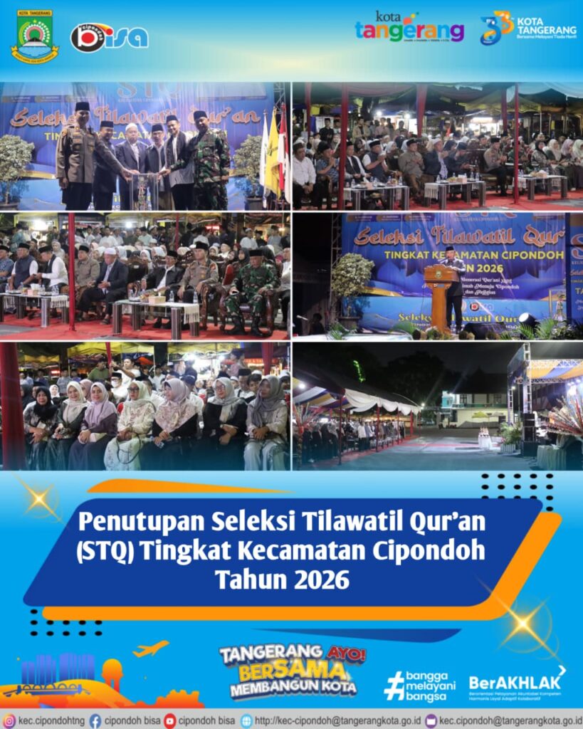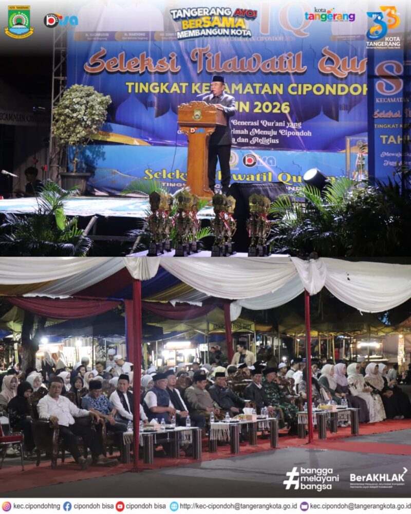 “Kami memberikan apresiasi setinggi-tingginya kepada pengurus Lembaga Pengembangan Tilawatil Qur’an (LPTQ), panitia, serta seluruh peserta yang telah berpartisipasi meramaikan dan menyukseskan jalannya STQ Kecamatan Cipondoh,” ujar Muhamad Marwan, Sabtu (25/04/2026).