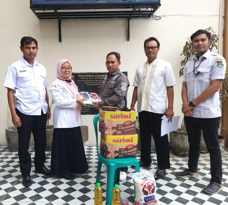 Bagian Bencana Dinsos Kabupaten Tangerang, Lili di dampingi staff nya mendatangi kantor desa pasanggrahan dan menyerahkan bantuan kepada Hengki melalui Kepala Desa Pasanggrahan Agus Setyantoro karena yang bersangkutan tengah mendapatkan perawatan di RSUD.