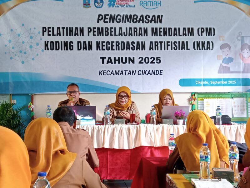 Dinas Pendidikan dan Kebudayaan (Disdikbud) Cikande menggelar Pengimbasan pelatihan pembelajaran mendalam (PM) Koding dan Kecerdasan Artifisial (KKA) bertempat di aula SDN Julang, Selasa (23/9/2025).