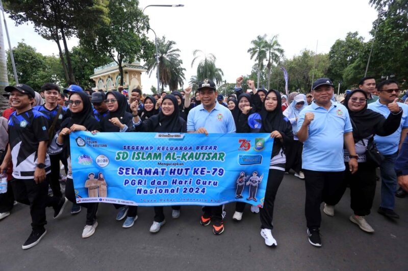 Pemerintah Kota (Pemkot) Tangerang melalui Dinas Pendidikan (Dindik) kembali memeriahkan Puncak Peringatan Hari Guru Nasional (HGN) sekaligus HUT ke-79 Persatuan Guru Republik Indonesia (PGRI) dengan menyelenggarakan kegiatan jalan santai, Sabtu (30/11/2024).