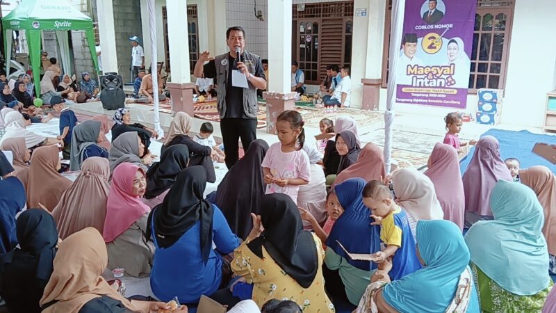 Calon Bupati Tangerang nomor urut 2 Maesyal Rasyid menyambangi warga di Kampung Cicayur Bubulak, Desa Curug Sangereng, Kelapa Dua, Kabupaten Tangerang, Rabu (13/11/2024).