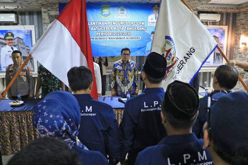 Wakil Wali Kota Tangerang, H. Maryono Hasan, menghadiri acara Pelantikan Pengurus Dewan Pimpinan Cabang Lembaga Pemberdayaan Masyarakat (DPC LPM) Kecamatan Batuceper Periode 2025–2030, yang digelar di Aula Kecamatan Batuceper, Jumat (8/8/2025).