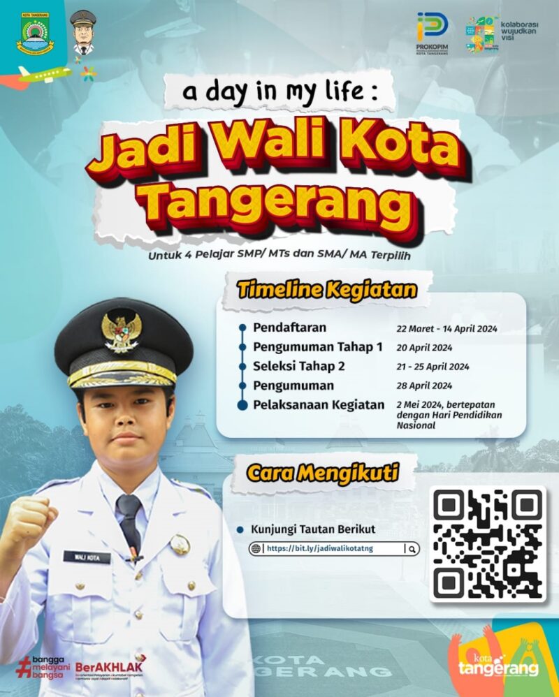 Pemerintah Kota (Pemkot) Tangerang mempersembahkan program istimewa “A Day in My Life” bagi para pelajar Kota Tangerang. Program tersebut akan digelar bertepatan dengan Hari Pendidikan Nasional (Hardiknas) yang jatuh pada 2 Mei 2024 mendatang.