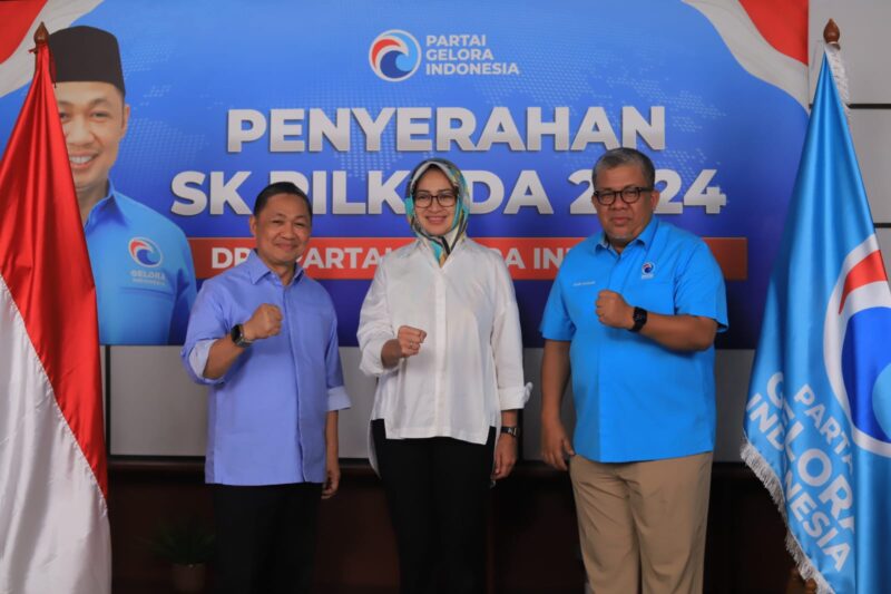 Pasangan bakal calon gubernur Banten dan bakal calon wakil gubernur Banten Airin Rachmi Diany-Ade Sumardi resmi mengantongi rekomendasi dari Partai Gelora untuk maju pada Pemilihan kepala daerah (Pilkada) Banten 2024.