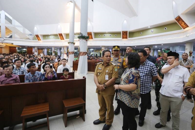 Penjabat (Pj) Walikota Tangerang, Dr. Nurdin, bersama jajaran Forum Komunikasi Pimpinan Daerah (Forkopimda) Kota Tangerang, melakukan monitoring pelaksanaan ibadah misa Natal di sejumlah gereja di Kota Tangerang, Selasa malam (24/12).
