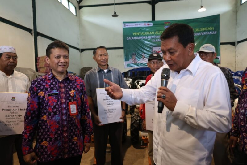 Bupati Tangerang Moch. Maesyal Rasyid menyerahkan bantuan alat dan mesin pertanian (Alsintan) kepada para petani dan kelompok tani di Kabupaten Tangerang. Kegiatan tersebut digelar di UPT Dinas Pertanian, Kecamatan Curug, Kamis (18/12/25).