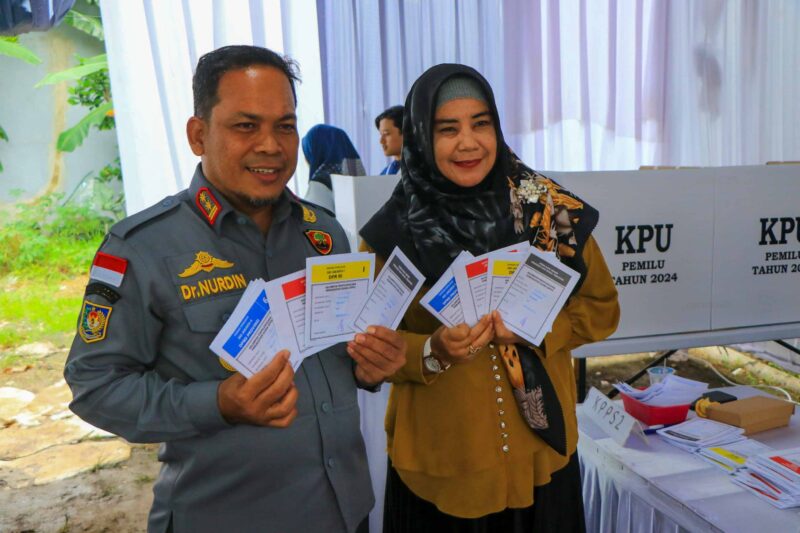 Penjabat Walikota Tangerang, Dr. Nurdin, bersama istri dan anak-anaknya, turut serta dalam Pemilihan Umum (Pemilu) 2024 di TPS 81, Kelurahan Kalisari, Pasar Rebo, Jakarta Timur.