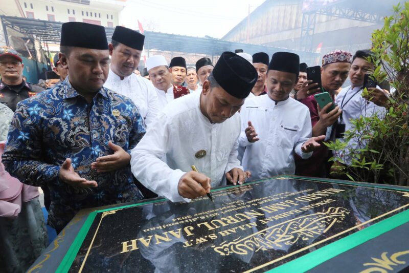 Penjabat (Pj) Walikota Tangerang, Dr. Nurdin, didampingi oleh Camat Neglasari, Andika Nugraha, menghadiri acara Peringatan Maulid Nabi Muhammad SAW sekaligus meresmikan Masjid Jami Nurul Jannah yang terletak di Jalan Iskandar Muda, Gg Utama II, Kecamatan Neglasari, Sabtu (21/09).