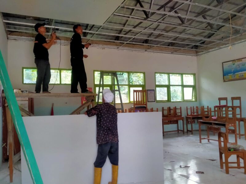 Pantauan di sekolah, Salah satu pekerja menjelaskan proses perbaikan plafon untuk dua ruang kelas memakan waktu sekitar 4 hari. “Hari ini setelah kita pasang plafon gisun baru kemudian di kompon. Setelah ini baru mengerjakan plafon kelas VI,”jelasnya.