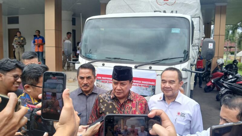 Palang Merah Indonesia (PMI) Kabupaten Tangerang kembali salurkan bantuan untuk korban bencana alam di Provinsi Aceh, Sumatera Utara, dan Sumatera Barat sekaligus lantik pengurus baru se 29 kecamatan di Gedung Serba Guna (GSG) Pusat Pemerintahan Kabupaten Tangerang, Kamis (12/2).