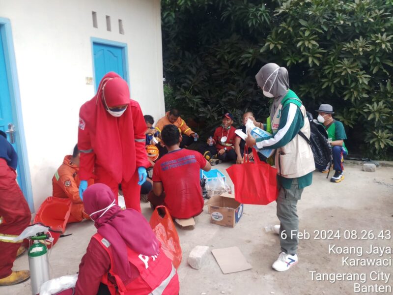 Bertujuan untuk memastikan keamanan para petugas dan warga, personel PMI Kota Tangerang dengan sigap membagikan masker di sekitar lokasi kejadian.