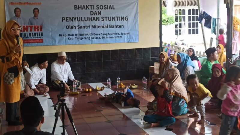 Relawan santri milenial Banten menggelar Bakti sosial (Baksos) dan penyuluhan stunting di Kampung Kole RT 04/03, Desa Dangdeur, Kecamatan Jayanti, Kabupaten Tangerang, pada (16/1) Kemarin.