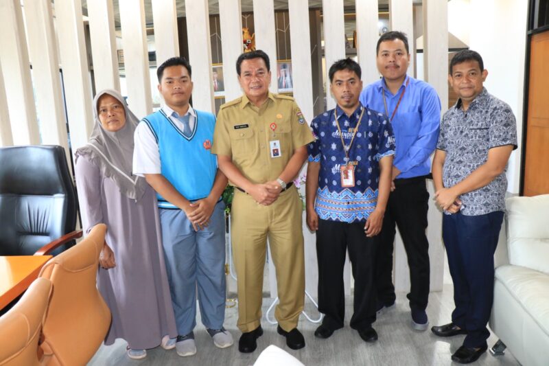 Sekretaris Daerah Kabupaten Tangerang Moch Maesyal Rasyid melepas Muhamad Aril, siswa kelas XII SMK Bina Mandiri Pagedangan yang akan mengikuti seleksi Duta Siswa Indonesia tingkat nasional. Pelepan secara langsung tersebut dilakukan di ruang kerja Sekda, Senin, (15/1/24).