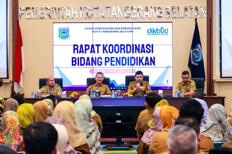 Pejabat Sementara (Pjs) Walikota Tangerang Selatan, Tabrani, memimpin Rapat Koordinasi (Rakor) Bidang Pendidikan yang dihadiri oleh seluruh Kepala TK Pembina, Sekolah Dasar (SD), dan Sekolah Menengah Pertama (SMP) Negeri se-Kota Tangerang Selatan. Rapat ini berlangsung di Aula Blandongan Puspemkot Tangerang Selatan, dikutip Rabu (16/10/2024).