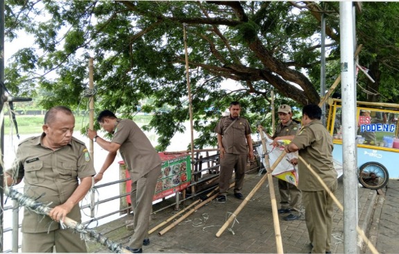 Trantib Bongkar Lapak Pedagang di Bantaran Cisadane